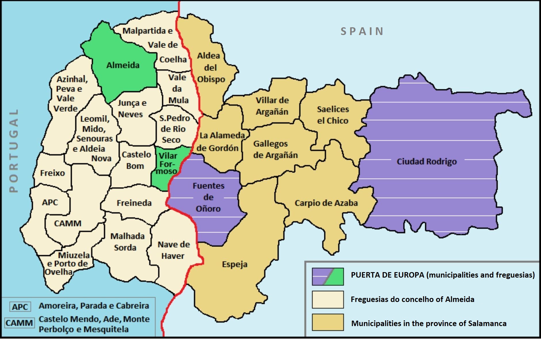 Puerta de Europa Eurocity. Parishes in the municipality of Almeida and municipalities in Salamanca near the Stripe